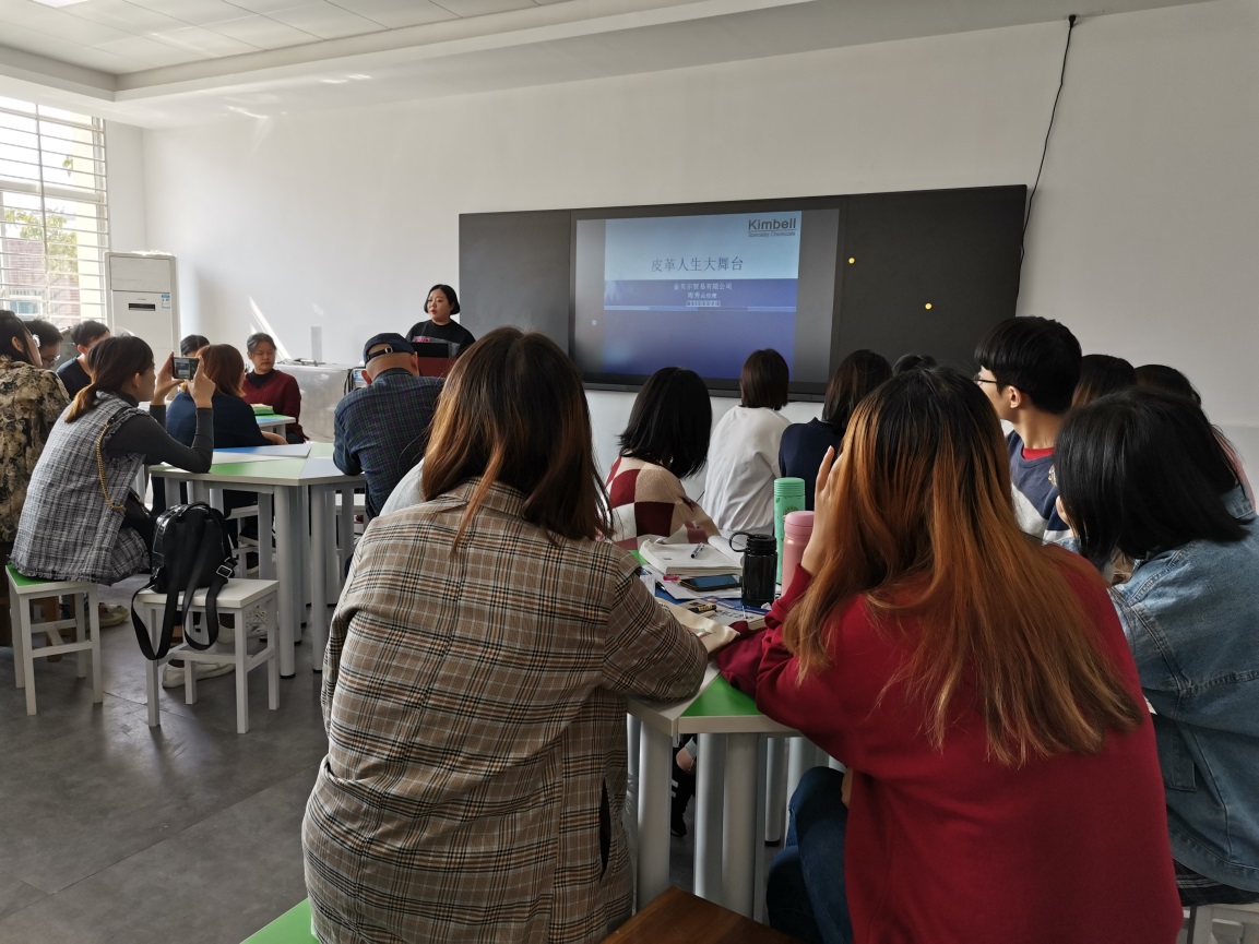 首先,周秀总经理做了“皮革人生大舞台”的报告,简单介绍了公司的基本情况、发展历程和公司对员工的要求,热忱欢迎毕业生到公司实习和工作。随后,王付军工程师做了“皮革生产新趋势—清洁化制革生产”的主题报告,就当前国家环保及市场对产品的要求进行了讲解,对皮革生产过程中的各工序进行了剖析并详细讲解了其设计和成功实施的清洁化铬鞣技术。最后,与师生进行了互动交流。该报告对毕业班学生受益匪浅。