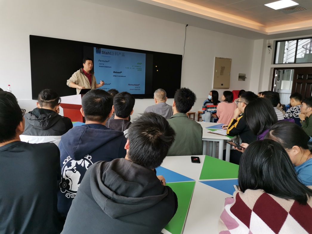 为了进一步加强课程改革、丰富专业建设内涵,应我院轻化工程系的邀请,斯塔尔精细涂料(苏州)有限公司郭祥经理、夏敏经理于10月21日来访我院并在5号楼轻化工程实验室(智慧实验室)给轻化工程专业毕业班学生作合成革的清洁化生产技术的报告和指导合成革的制作实验。报告由罗建勋老师主持,合成革的制作实验由许志老师和罗建勋老师全程辅助。