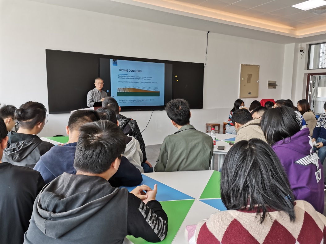 本次报告及实验大大地加深了学生们对合成革知识和工艺技术的理解,拓宽了其知识面。同学们感叹受益匪浅并感谢两位经理的指导和老师们的策划与组织。